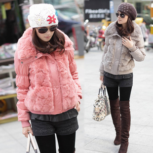 淘宝反季特价兔毛女装2011冬装新款韩版气质时尚真毛领短外套棉衣111
